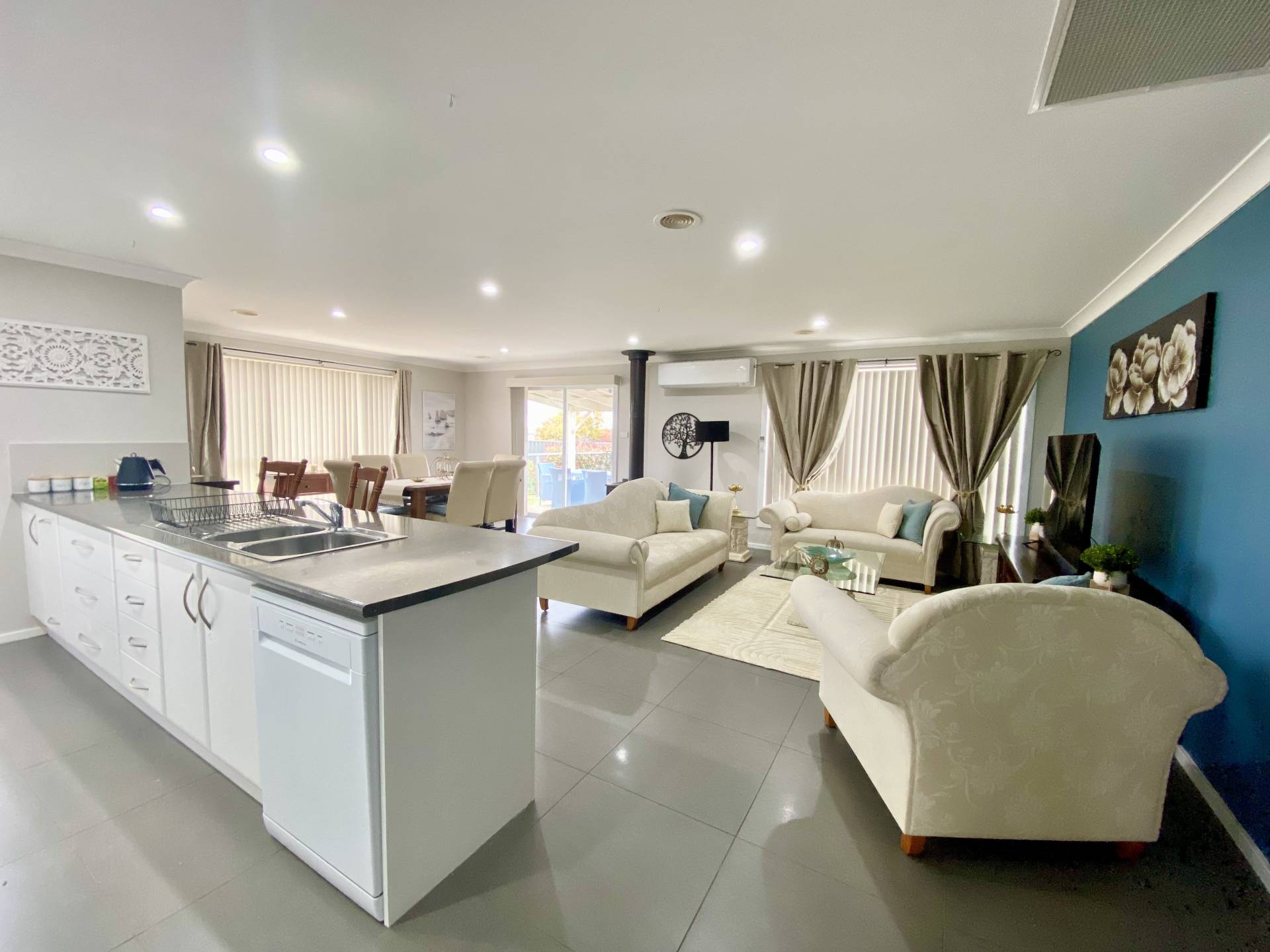 The floorplan allows for entertainers to fully utilise the living, dining and outdoor living all while observing life from the spacious and well appointed kitchen.