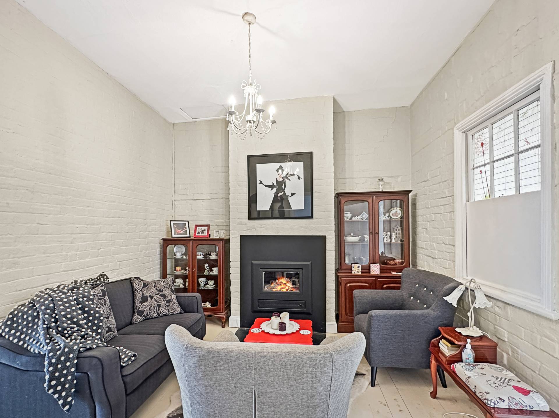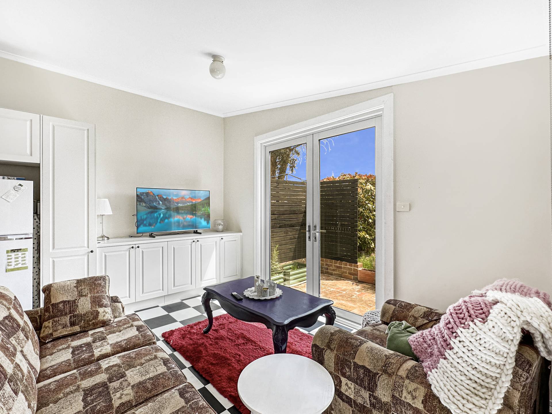 * Cosy lounge room, modern combined bathroom with shower over bath.