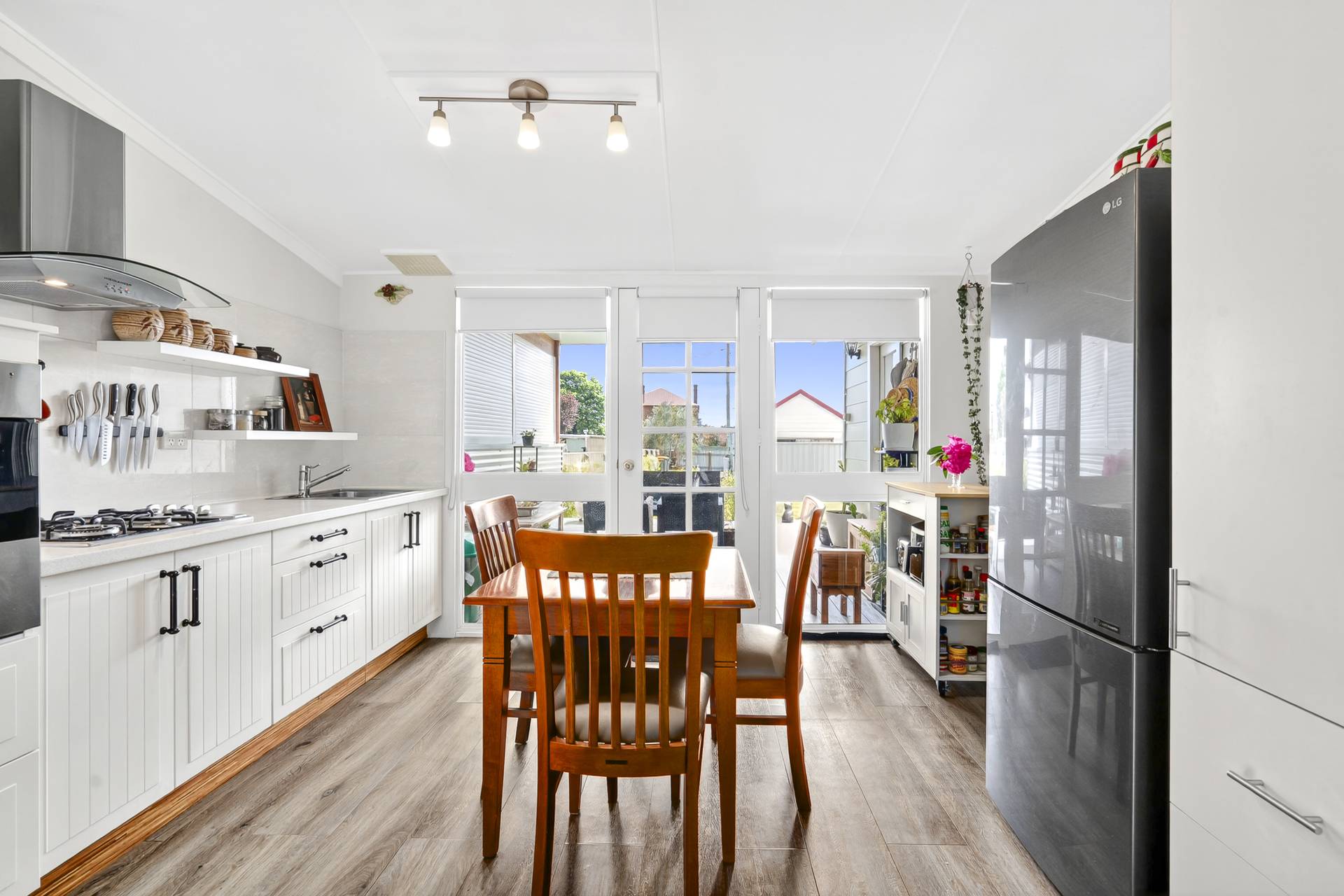 The light-filled living and dine-in kitchen area flows seamlessly onto the covered and north east facing, semi-enclosed rear deck, creating a private, inviting space perfect for hosting guests or relaxing in any season.