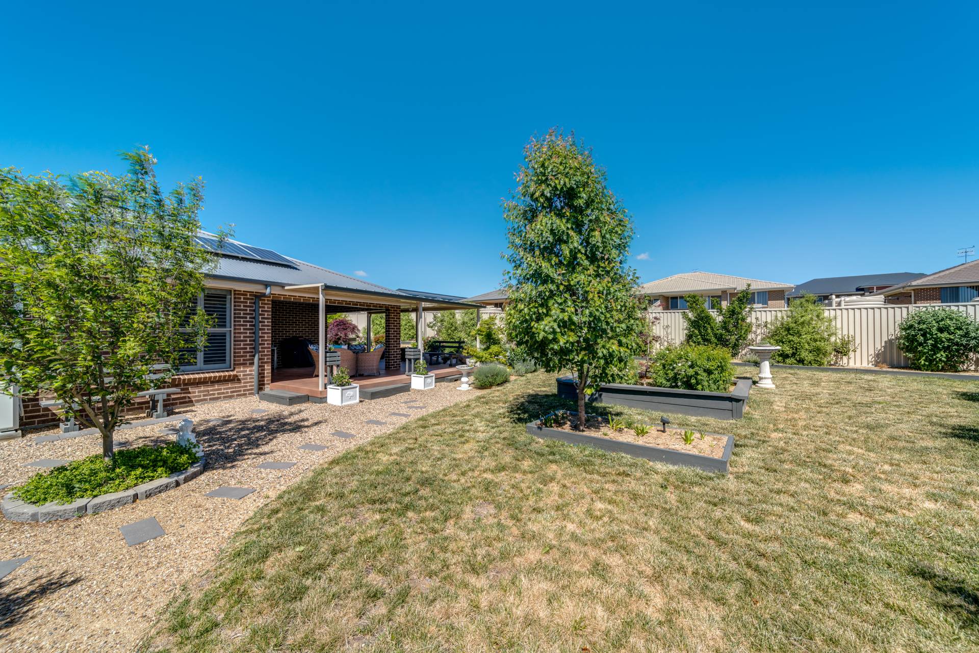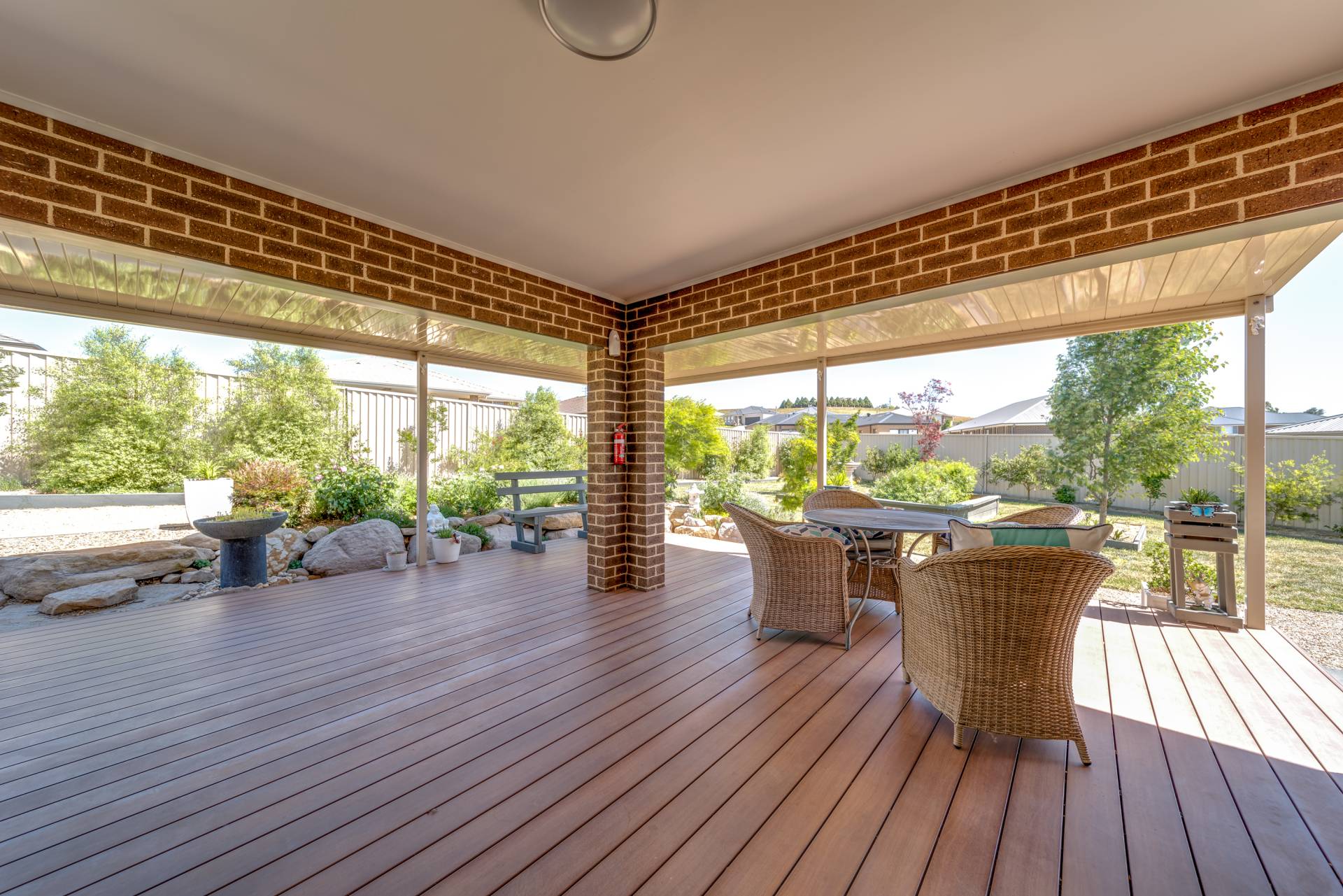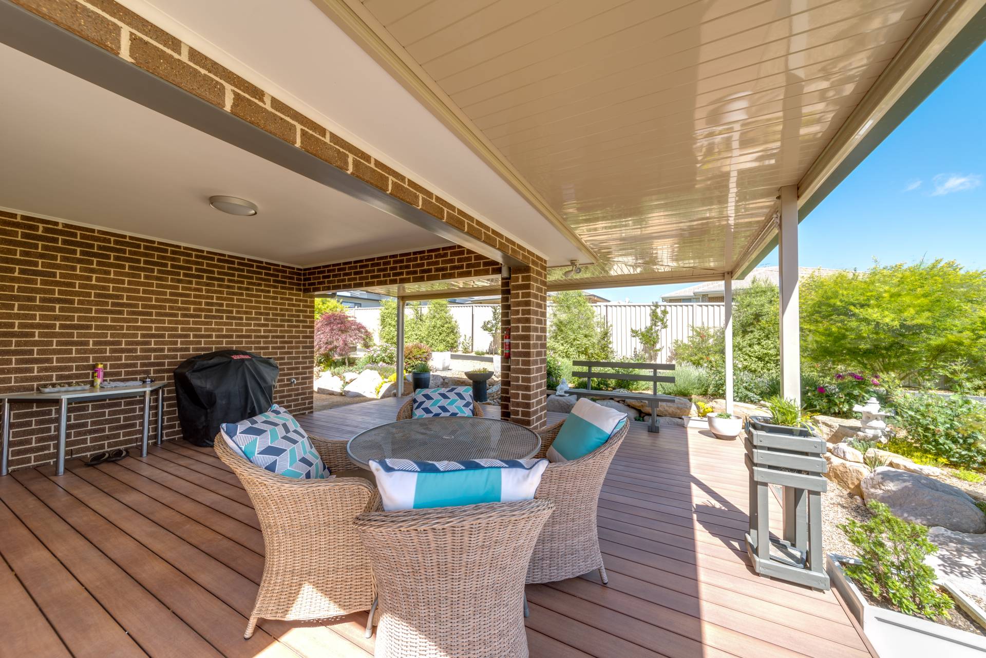 Outside under the alfresco you're going to be impressed. The flooring is timber look aluminium - the best looking and hardest of wearing floors for an outdoor space!  The yard is immaculately maintained and super low maintenance. There's additional side access which has been separated to allow for additional storage of the caravan, boat, trailers or more!