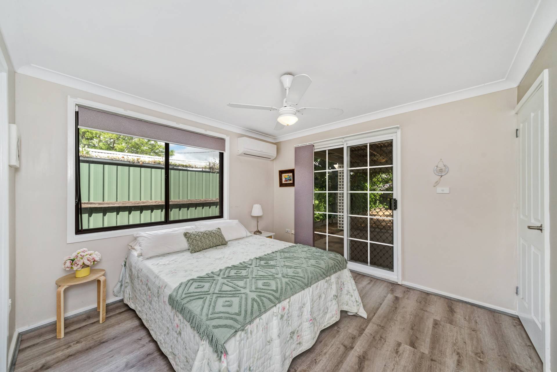 The private main bedroom has a WIR and is located at the back of the home with its own access to the covered and super low maintenance courtyard.
