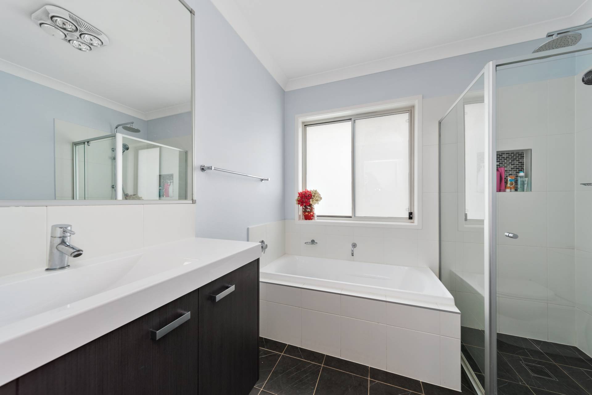 Behind door number 2 is the master bedroom. This room has enough space for a super king suite if you're lucky enough to have one! It has a walk-in robe with hanging down both sides for his / hers storage and a spacious Ensuite.