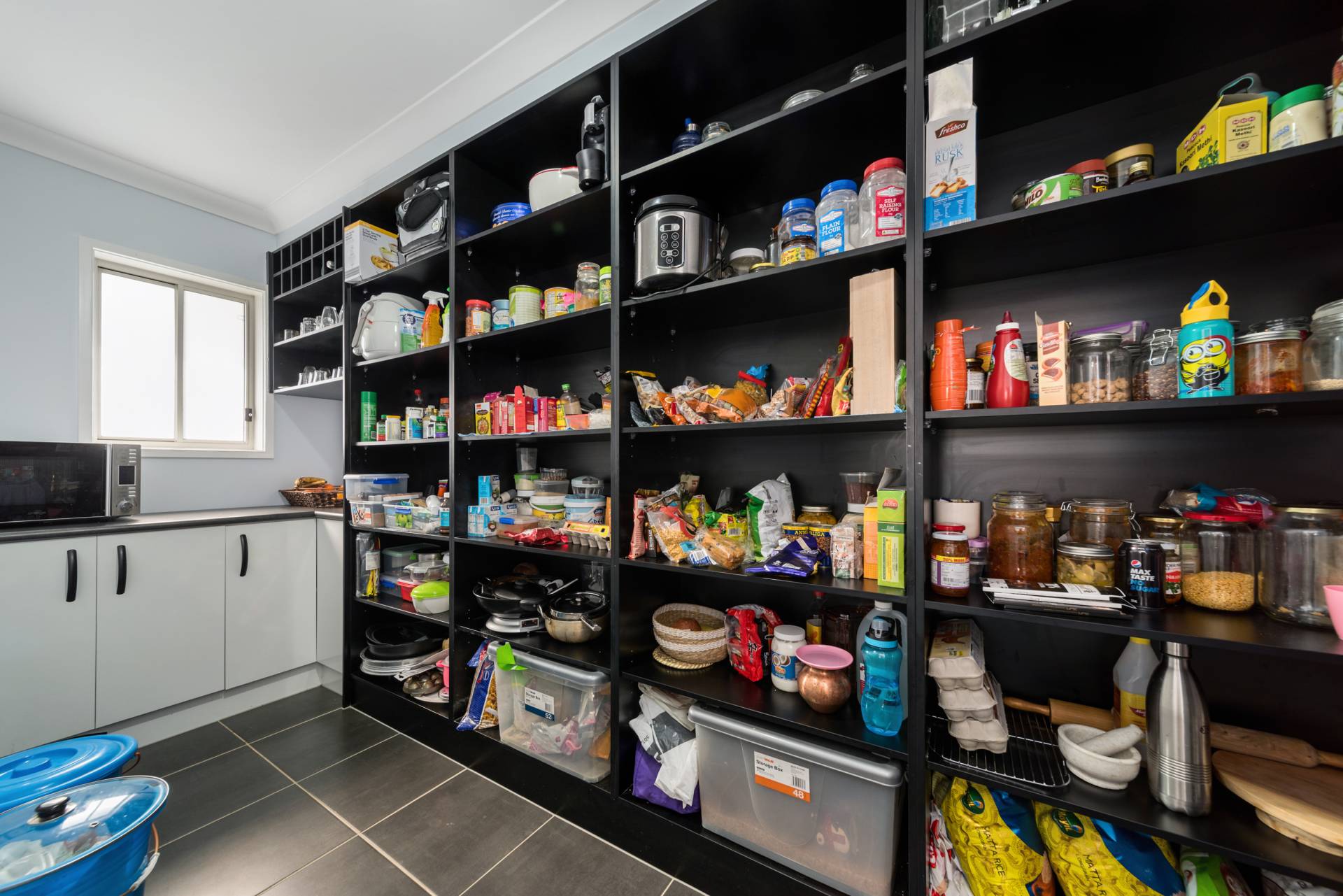 Behind the kitchen is a surprisingly large and decked out Walk-in Pantry. Simply put - It is HUGE!